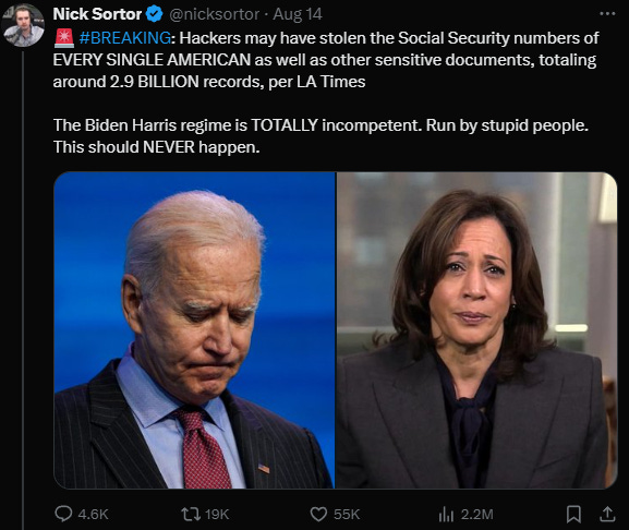 Third, although Biden-Harris do suck ass, the blame and responsibility does not go to them. They can not prevent the actions of black hat hackers. They can not make a data leak magically disappear by waving their Magic President Wand. Deal with it.