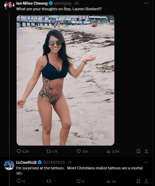 I don’t care about this bitch, and I don’t care about her tattoos. I care about her fucking policies. Does she post a lot of cringey shit about God, Guns, and Glory? Probably. They all do. They all pander to their inbred hillbilly white trash electorate.