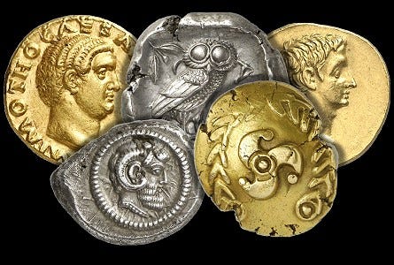 As for gold, gold coins are basically the exact same. Just a different metal.